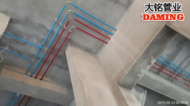 驗收技巧:禁止把水管壓在管線上面,首先要分清水管和管線。支架入墻處標有紅線的水管是熱水管,標有藍線的水管是不銹鋼冷水管,較細的純白色管是管線。